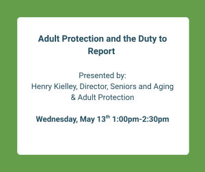 This presentation will provide an overview of adult protection. Participants will learn when and how to fulfill the duty to report, and the steps to take to ensure vulnerable adults are protected and supported.